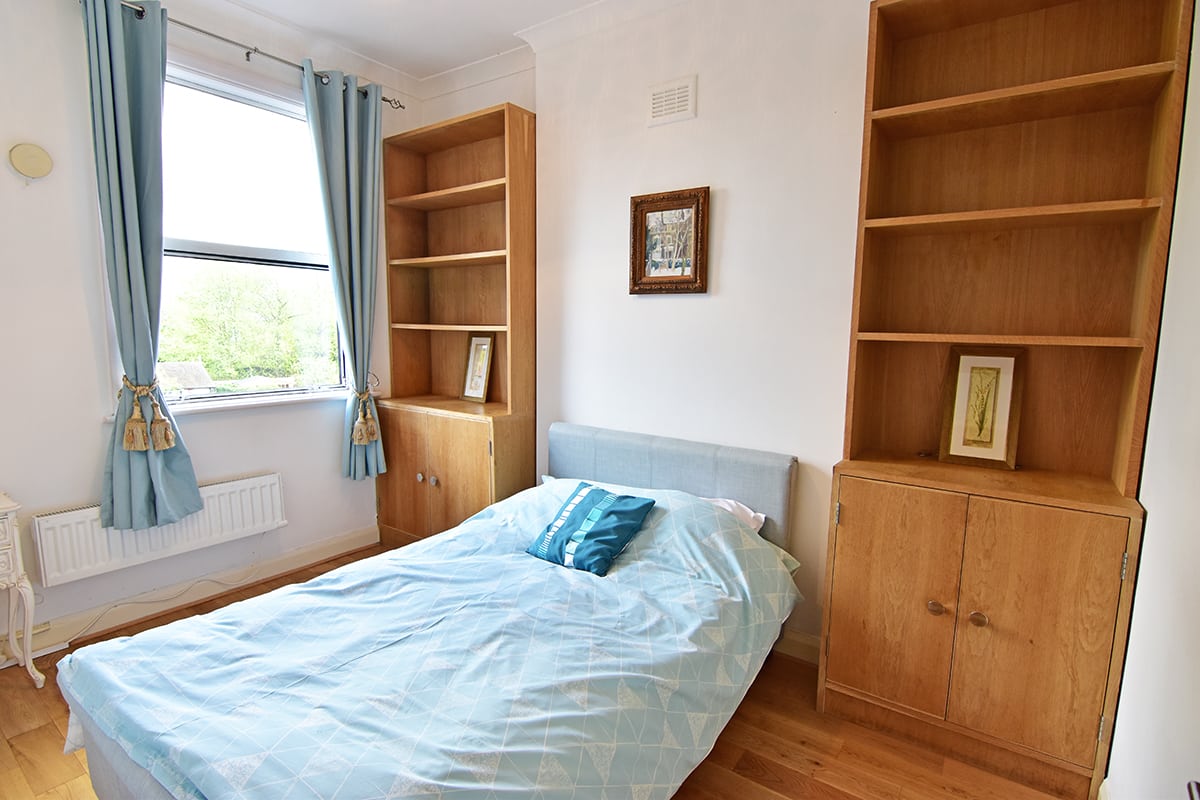 This bright 10-square-metre double room comes fully furnished including a double bed, 2 large cupboards, bedside table and lamp. The flat comes with a spacious and bright living room with a large flatscreen TV and an open plan kitchen, fully fitted with appliances (induction hobs, oven, washing machine & tumble dryer, dishwasher, microwave oven).