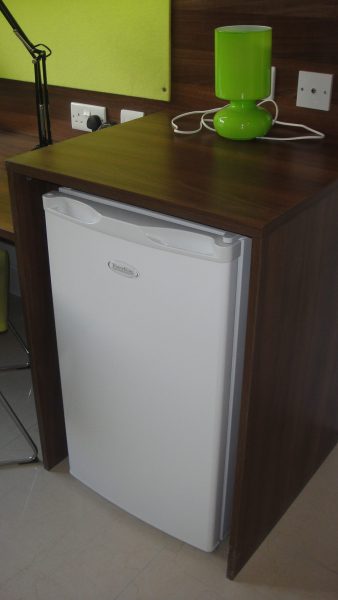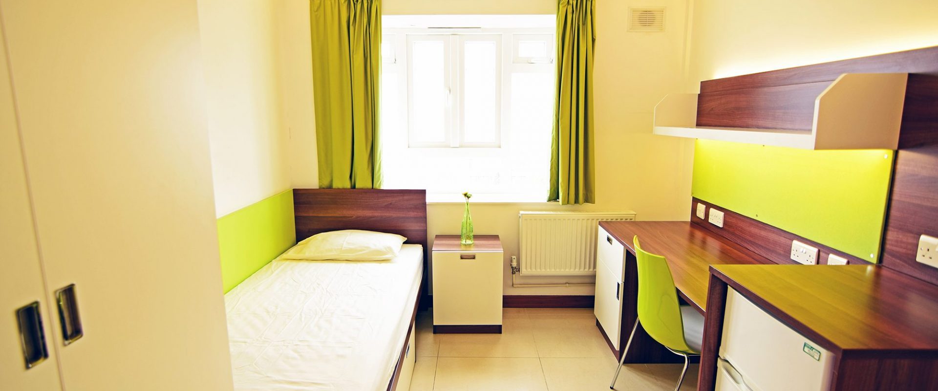 This is a single room with a bathroom. All ensuite rooms come fully furnished with a single bed and storage drawer, spacious wardrobe, desk and chair, bedside table and mini-fridge. The kitchen is shared by other residents on the same floor.